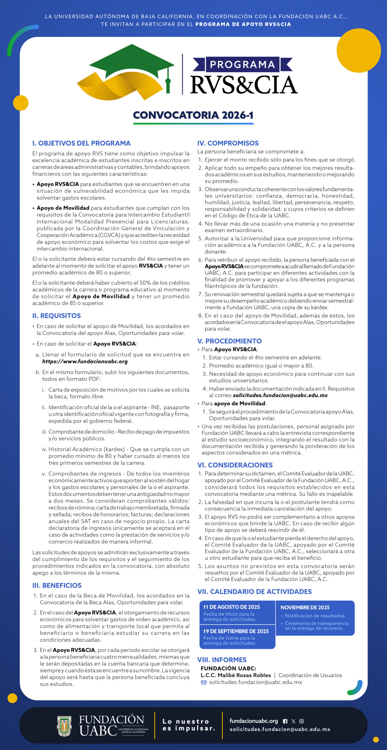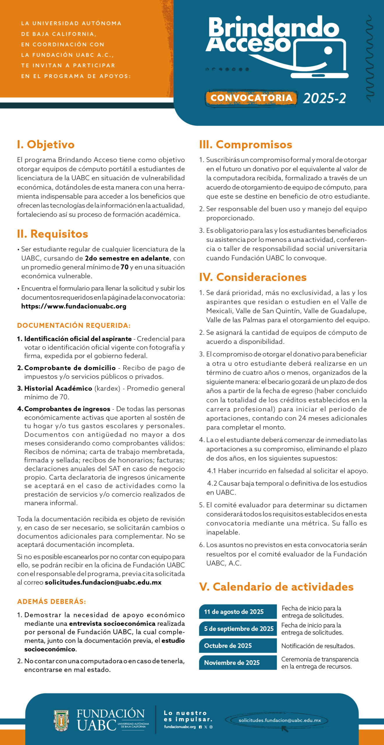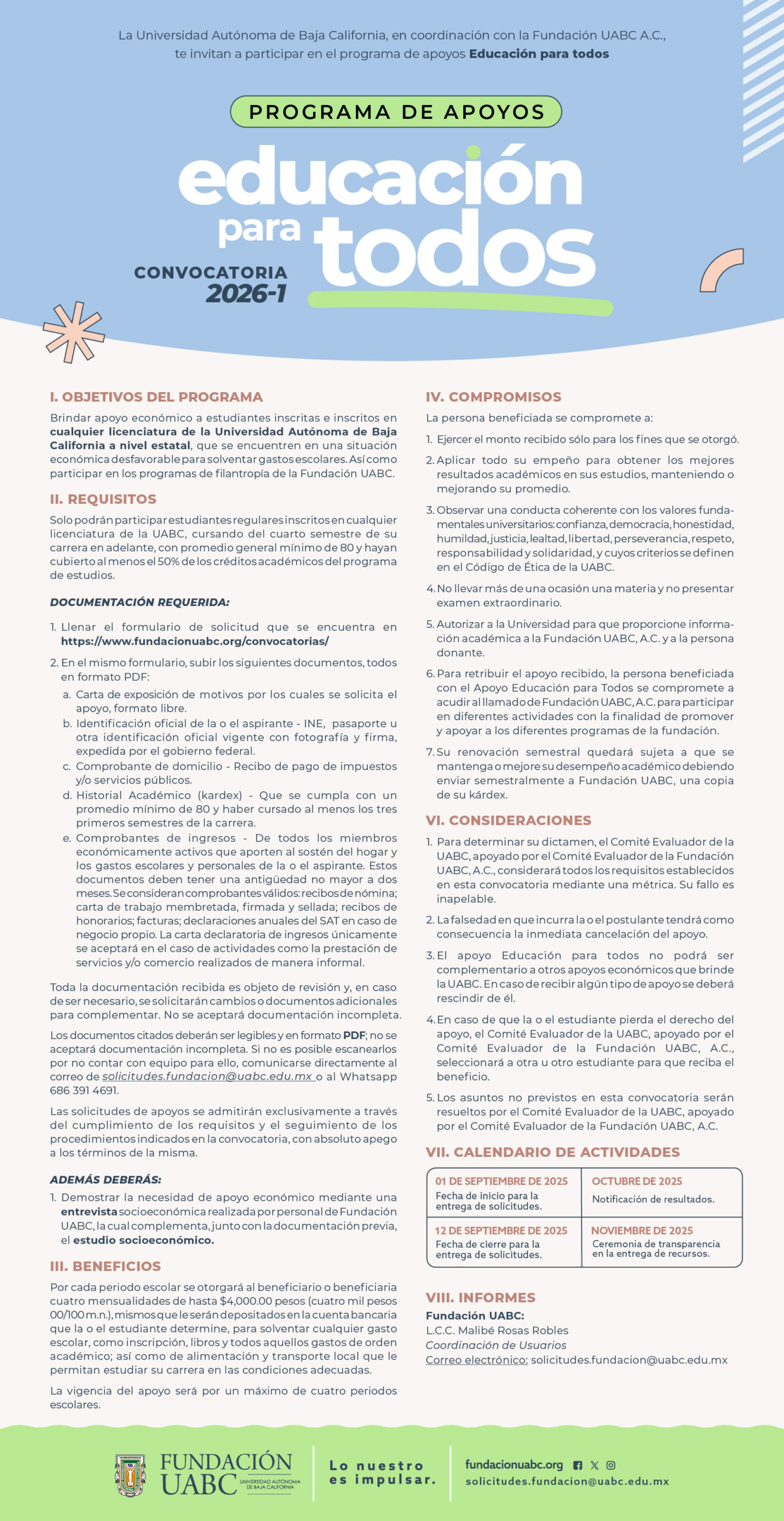Para mayor información escríbenos al correo electrónico:  solicitudes.fundacion@uabc.edu.mx.