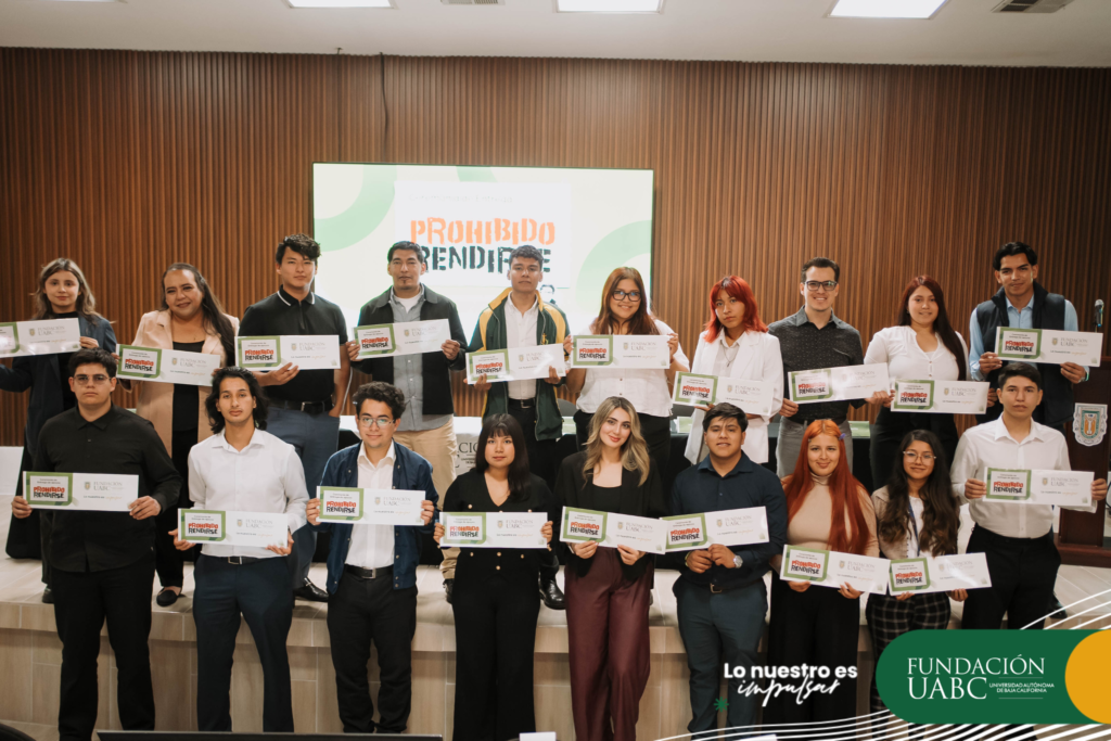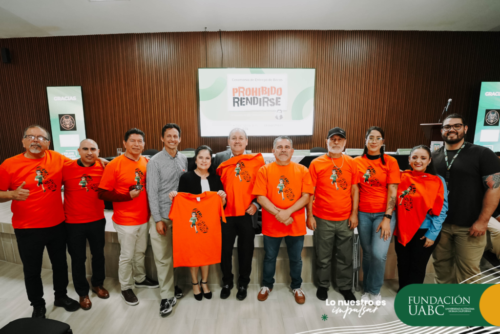 La solidaridad de más de 1300 participantes se transforma en 23 nuevas becas para estudiantes cimarrones. Mexicali, Baja California, miércoles 11 de marzo de 2026.- La Universidad Autónoma de Baja California (UABC) realizó la Ceremonia de Entrega de Becas Prohibido Rendirse, iniciativa que apoya a estudiantes universitarios mediante recursos recaudados en la onceava Carrera Prohibido Rendirse 2025, un evento que reunió a más de 1300 participantes con el propósito de respaldar la continuidad académica de estudiantes cimarronas y cimarrones. Gracias a la participación de corredoras, corredores, patrocinadores y voluntariado, se logró una recaudación de 1 millón 40 mil 510 pesos, recursos que se destinan a becas de manutención para estudiantes de la institución. En esta edición se otorgaron 23 nuevas becas, con lo que se alcanza un total histórico de 184 alumnas y alumnos beneficiados a través de este programa impulsado por Fundación UABC y la carrera deportiva. Cada apoyo consiste en 4000 pesos mensuales, los cuales se entregan a las y los estudiantes desde este momento y hasta la conclusión de su licenciatura. El rector de la UABC, doctor Luis Enrique Palafox Maestre, destacó que estas becas representan un respaldo solidario que puede marcar una diferencia determinante en la trayectoria académica de quienes las reciben. “Las becas Prohibido Rendirse son una muestra clara de solidaridad humana, de ese respaldo genuino que nace cuando alguien decide brindar apoyo a quienes lo requieren. Este apoyo solidario viene de personas que no nos conocen, pero que confían en la universidad y en el poder transformador de la educación superior”, expresó. Subrayó además que, en muchos casos, este tipo de apoyos resulta decisivo para la permanencia en la universidad. “Estos apoyos no son complementarios; en muchos casos estas becas son la diferencia entre terminar una carrera universitaria o abandonar sus estudios de manera prematura”, afirmó. El rector también recordó: “Este evento tiene un significado muy especial, que es mantener viva la filosofía de vida de un joven admirable como Eric Aguilar Hernández. Hoy su fuerza y su convicción siguen beneficiando de manera directa a nuestra comunidad universitaria”, señaló. Por su parte, el presidente del Consejo Directivo de Fundación UABC, ingeniero Jorge Mario Arreola Real, destacó que la entrega de becas representa el resultado del esfuerzo colectivo de la comunidad. Reconoció asimismo el compromiso de la familia Aguilar Hernández, impulsora de esta causa. “Gracias por su generosidad, por su resiliencia y por permitir que el legado de Eric se convierta en la esperanza de cientos de jóvenes. Ustedes son el alma de este movimiento”, expresó. Durante su intervención, la secretaria general de la UABC y presidenta del Centro Deportivo Universitario, maestra Edith Montiel Ayala, resaltó que la carrera deportiva se ha consolidado como una muestra del compromiso solidario de la comunidad universitaria. Añadió que cada apoyo representa una oportunidad real para que el alumnado continúe con su formación profesional. “Cada una de estas becas representa mucho más que un apoyo económico; representa una oportunidad real para que una o un estudiante continúe construyendo su proyecto de vida”, manifestó. En representación de las y los estudiantes que recibieron una beca, Ana Belén Zelaya Campos, alumna de la licenciatura en Traducción de la Facultad de Idiomas del campus Ensenada, compartió que este apoyo permitirá fortalecer su trayectoria académica. “Recibir este apoyo representa para mí un impulso muy significativo para continuar con mi preparación. Significa poder dedicar más tiempo y energía a mi desarrollo académico y aprovechar al máximo las oportunidades que la universidad nos brinda”, expresó. La estudiante agradeció a las personas e instituciones que hacen posible esta iniciativa solidaria. “Agradezco profundamente a la Fundación UABC por brindar oportunidades como esta, que permiten a los estudiantes seguir adelante con sus estudios. Este apoyo no sólo significa un respaldo económico, sino también una muestra de confianza en el esfuerzo y la dedicación de quienes buscamos superarnos a través de la educación”, concluyó. En la ceremonia también se contó con la presencia de la familia Aguilar Hernández, fundadora e impulsora de la carrera y de las becas Prohibido Rendirse, quienes mantienen viva esta iniciativa en memoria de Eric Aguilar Hernández, reafirmando el mensaje que da nombre al programa: que, ante los retos de la vida y la educación, está prohibido rendirse.