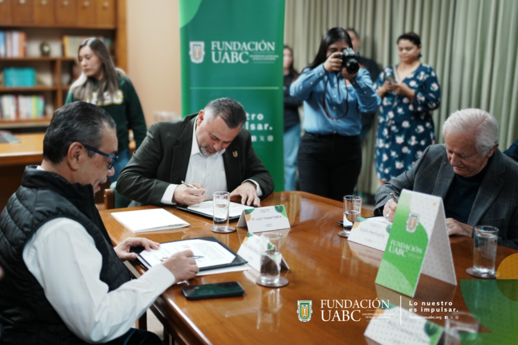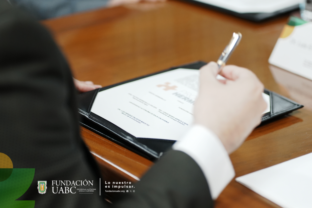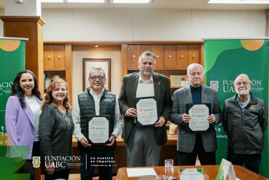 La Universidad Autónoma de Baja California (UABC), la Fundación UABC y Grupo Hermosillo formalizaron un convenio tripartita de colaboración para la creación del Programa de Apoyos Grupo Hermosillo, una iniciativa que fortalecerá la formación académica de estudiantes de la UABC. La firma tuvo lugar el 11 de diciembre de 2025 en la Sala de Juntas de Rectoría, con la presencia del Dr. Luis Enrique Palafox Maestre, rector de la UABC; el Ing. Jorge Mario Arreola Real, presidente del Consejo Directivo de Fundación UABC; Arq. Víctor Hermosillo, Arq. Leopoldo De La Maza y la Sra. Beatriz Campoy integrantes de Grupo Hermosillo.